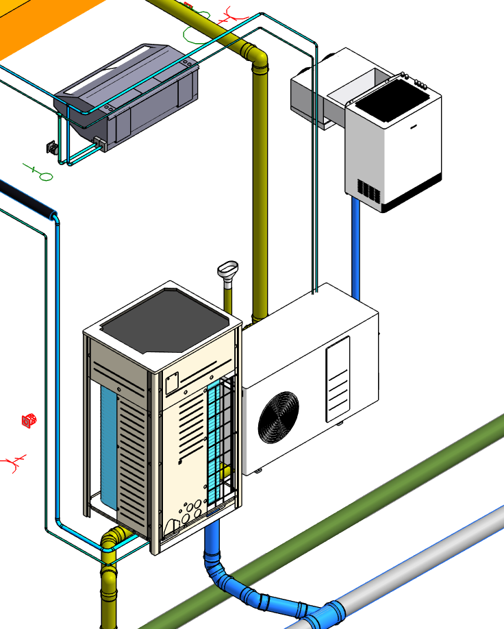 Die Gebäudetechnik wurde kostenoptimiert, so dass monovalente Systeme den Komfort des Gastes, der Professionellen Gastronomie und der Sanitärgäste bieten. Bei diesem Autohof wurde komplett auf Wassergeführte Heizsysteme verzichtet. Wenn sowieso Wärmepumpen eingesetzt werden, bedeutet der Übergang von Kältemittel zu Wasser nur Verluste und übermäßige Komplexität. Um die Warmwasserbereitung trotzdem effizient zu betreiben wurden Duschen mit Wärmerückgewinnung eingesetzt. Die Luftwechsel wurden durch Spülmaschinen mit integrierter Wärmerückgewinnung und Konvektomaten mit integrierten Hauben reduziert. Zur Ressourcenschonung wurden Textilkanäle anstelle von Blechkanälen eingesetzt, die dem Blick zum sichtbaren Holzbau offenlassen. Die Luft ist immer frisch und konventionelle Klimakasetten heizen und kühlen im Spitzenlastfall.